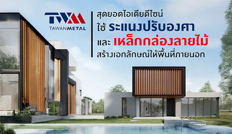 สุดยอดไอเดียดีไซน์ ใช้ 'ระแนงปรับองศา' และ 'เหล็กกล่องลายไม้' สร้างเอกลักษณ์ให้พื้นที่ภายนอก