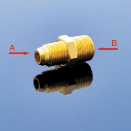 • ข้อต่อทองเหลือง S48 ต่อตรงแฟลย์ เกลียวนอก Model S48X5X4 A (PT) 5/16, B (PT) 1/4