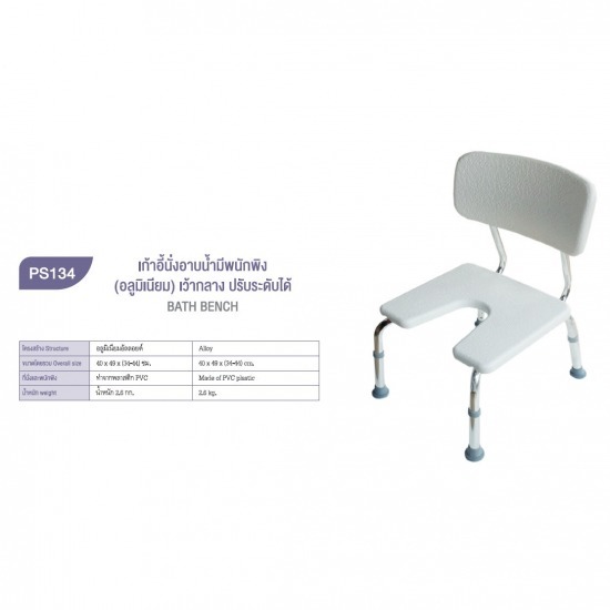 จำหน่ายเก้าอี้นั่งอาบน้ำ มีพนักพิง (อลูมินียม) เว้ากลาง ปรับระดับได้