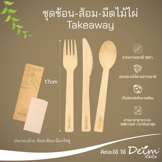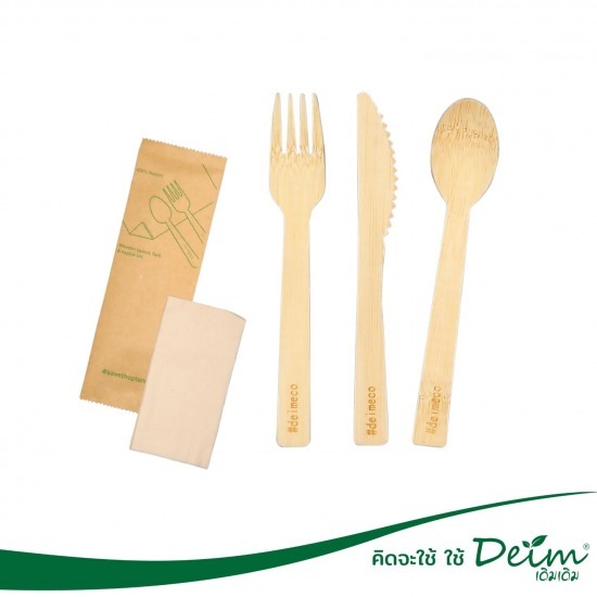 ชุดช้อนส้อมไม้ไผ่รักษ์โลก ผลิตจากไม้ไผ่เกรดพรีเมี่ยม พกพาสะดวกใช้กับอาหารได้ทุกชนิด ปลอดภัยเพราะผ่านการฆ่าเชื้อด้วยแสง UV ผ่านมาตรฐาน GMP/GHP เวอร์ชั่นล่าสุด Codex GHP : IC-GHP-2107002 เป็นการลดขยะพลาสติก