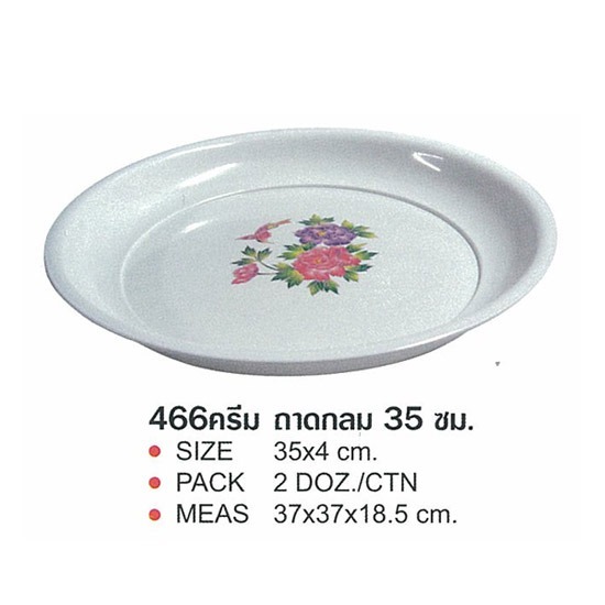 ถาดกลม สีครีม มี 3 ขนาด ได้แก่ 30 ซม. , 35 ซม. และ 40 ซม.