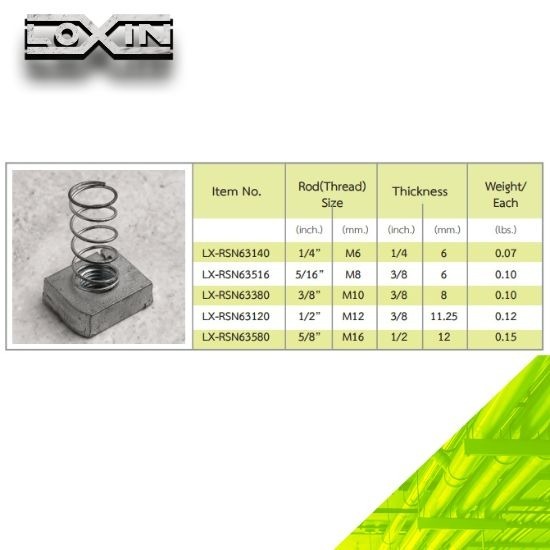 น็อตสปริงติดแผ่นเหล็ก สำหรับยึดกับเหล็กซี รางไฟฟ้า (Elec C-Channel) เพื่อติดตั้งงานระบบไฟฟ้า เดินสายไฟฟ้าผลิตจากเหล็กคาร์บอน (Carboon Steel)” เพื่อติดตั้งงานระบบไฟฟ้า เดินสายไฟฟ้า ผลิตจากเหล็กคาร์บอน สามารถเลือกการชุบได้ 2 รูปแบบ คือ