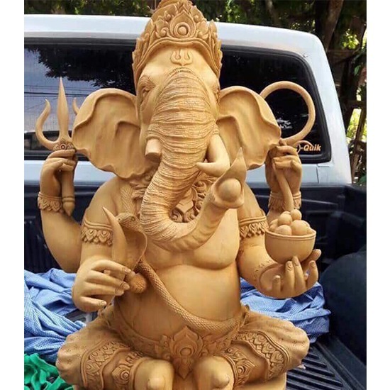 รับแกะสลักรูปลอยตัว พระพิฆเนศไม้แกะสลัก เป็นการแกะสลักไม้สักทองที่มองเห็นได้รอบด้าน มักแกะเป็นพระพุทธรูป รูปคน สัตว์ หรือรูปตามคติความเเชื่อ แกะสลักรูปลอยตัวครุฑ ช่างที่เป็นผู้แกะสลักจะต้องคำนึงถึงองค์ประกอบทางศิลปะหลายประการ เพื่อช่วยให้ผลงานมีความงดงาม และสามารถสร้างความรู้สึกประทับใจ แก่ผู้เห็น เช่น การลงสีทอง การลงสีดำ การลงสีแดง และการสลักลวดลายที่ต้องใช้ความละเอียดเป็นอย่างมาก และมีการสร้างและจัดงานประติมากรรมให้เหมาะสมกับสิ่งแวดล้อม เช่น เหมาะกับขนาดของสถานที่ ฐานที่ตั้ง และวัสดุอื่นๆ สามารถช่วยให้ประติมากรรมนั้นดูเด่น เป็นสง่า