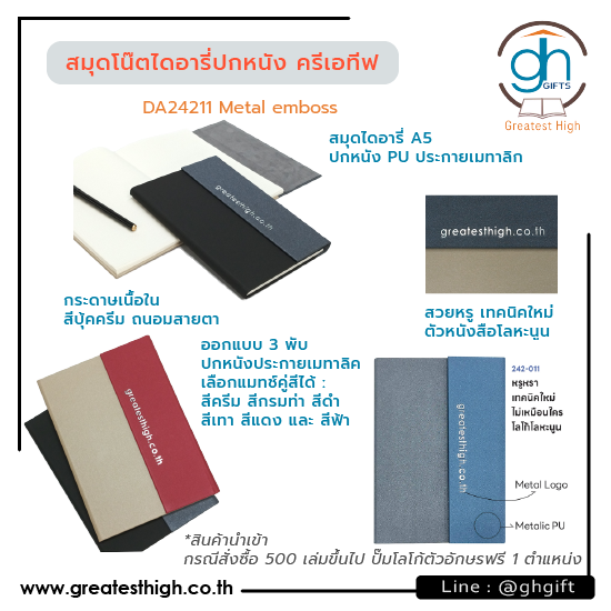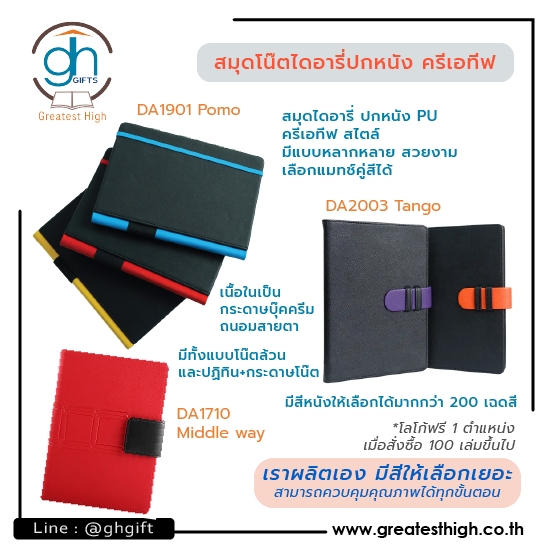 รับผลิตสมุดโน๊ตปกหนัง รับผลิตสมุดไดอารี่ปกผ้า รับผลิตสมุดโน๊ตพรีเมี่ยม รับผลิตสมุดโน๊ตOrganizerของพรีเมี่ยม ดีไซน์สวยพร้อมงานปั๊มโลโก้ งานพิมพ์สกรีนโลโก้หน่วยงาน-องค์กรหรือปั๊มโลโก้ พิมพ์สกรีนโลโก้แบรนด์สินค้า รับงานสั่งทำไม่มีกำหนดขั้นต่ำ-น้อยชิ้นเราก็รับ ลูกค้าสั่งจำนวนยิ่งมากยิ่งได้ ราคาถูก