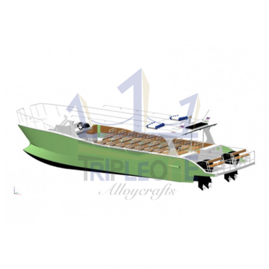 เรืออลูมิเนียมทรงแคททามาราน วัสดุอลูมิเนียมมารีนเกรด 5083 H116 สำหรับใช้ต่อเรือทะเลโดยเฉพาะ ติดตั้งระบบกันจมตามมาตราฐานของบริษัท