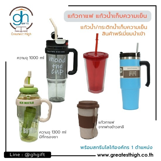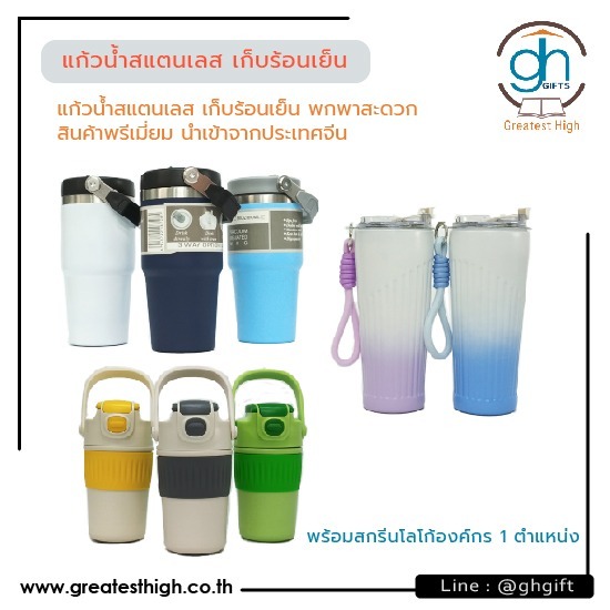 เราคือผู้นำเข้าจากโรงงานจีน มีให้เลือกหลากหลายรูปแบบ คัดสรรคุณภาพแล้ว มีทั้งแก้วน้ำสแตนเลส แก้วน้ำพลาสติก Mug Tumbler กระติกน้ำ กระติก 2 ลิตร แบบต่างๆ มีสีให้เลือกมากมาย พร้อมสต๊อกในบางรายการ พร้อมสกรีนโลโก้