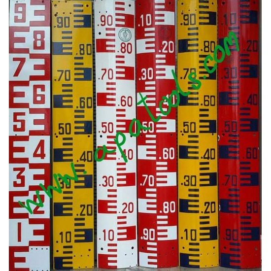 แผ่นบวก (+)เลข 0 อยู่ล่าง ใช้วัดระดับน้ำขึ้น พื้นสีเหลือง ช่องสเกลและตัวเลขสีน้ำเงินเข้ม