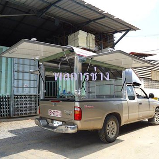 โครงหลังคาหุ้มอลูมิเนียมทึบแบบเปิดด้านข้างและด้านท้ายขึ้น ความสูงจากพื้นกระบะถึงหลังคา 1.60-1.80 เมตร