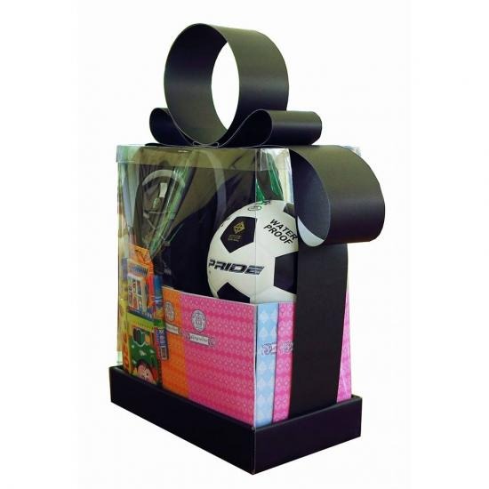 ภายในบรรจุอุปกรณ์การศึกษาและอุปกรณ์กีฬา เช่น กระเป๋าเป้ ดินสอไม้บรรทัด ยางลบ กาวน้ำสีเทียน กบเหลาดินสอ สมุดลายไทย ลูกฟุตบอลเป็นต้น