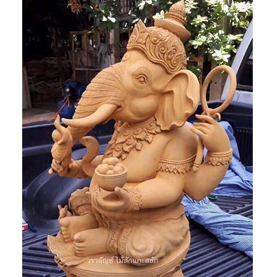 รับแกะสลักรูปลอยตัว พระพิฆเนศไม้แกะสลัก เป็นการแกะสลักไม้สักทองที่มองเห็นได้รอบด้าน มักแกะเป็นพระพุทธรูป รูปคน สัตว์ หรือรูปตามคติความเเชื่อ แกะสลักรูปลอยตัวครุฑ ช่างที่เป็นผู้แกะสลักจะต้องคำนึงถึงองค์ประกอบทางศิลปะหลายประการ เพื่อช่วยให้ผลงานมีความงดงาม และสามารถสร้างความรู้สึกประทับใจ แก่ผู้เห็น เช่น การลงสีทอง การลงสีดำ การลงสีแดง และการสลักลวดลายที่ต้องใช้ความละเอียดเป็นอย่างมาก และมีการสร้างและจัดงานประติมากรรมให้เหมาะสมกับสิ่งแวดล้อม เช่น เหมาะกับขนาดของสถานที่ ฐานที่ตั้ง และวัสดุอื่นๆ สามารถช่วยให้ประติมากรรมนั้นดูเด่น เป็นสง่า