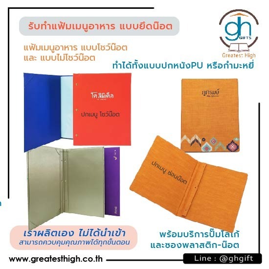 พร้อมให้คำปรึกษาการทำปกเมนูจากหนังเทียม รูปแบบ ขนาด ตามลูกค้ากำหนด