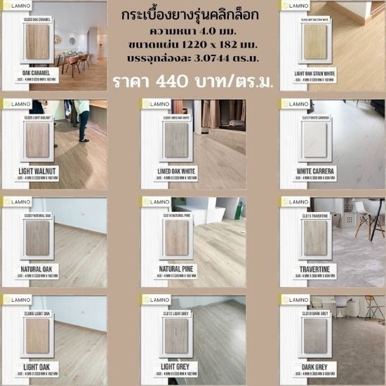 Get click lock rubber tiles. Installed by a team of professional rubber tile flooring technicians. Guaranteed work that is trusted There are no joints between the tiles. Helps reduce humidity between the tiles. Strong, resistant to moisture, does not absorb water, eliminates problems with mold, termites, and insect bites. Both beautiful and durable, no worries. Easy and fast installation. Just the wood pattern alone has the color of the wood pattern. Many wood patterns to choose from. Not including the stone pattern. When you see it, you must like it. It's beautiful with patterns. Designed to match any style of decoration. The sheet does not shrink when the temperature changes. The top surface is a scratch-resistant layer. There are also additional services such as removing the original floor, leveling the floor. Adjust the thin skim floor Cutting doors, laying walls, laying stairs For customers who need repairs as well.