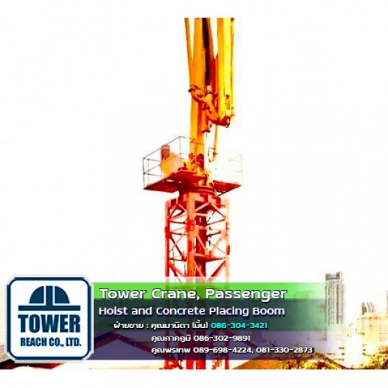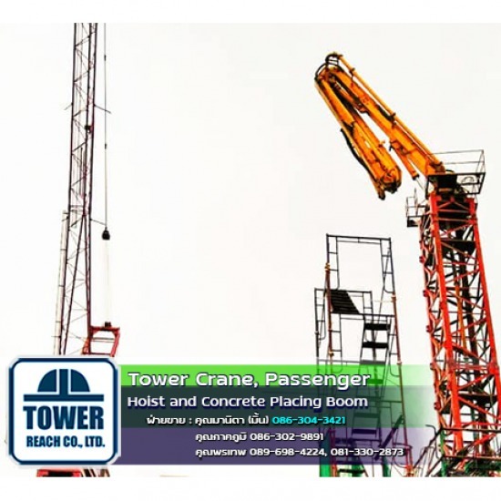 จำหน่าย-ให้เช่าทาวเวอร์เครนบูมราบหรือเครนแขนตรง และ จำหน่าย-ให้เช่าเครนบูมกระดกหรือเดอริคเครน พร้อมบริการสร้างรากฐานทาวเวอร์เครน บริการติดตั้ง-เพิ่มความสูง-ลดความสูง และบริการรื้อถอนทาวเวอร์เครน
