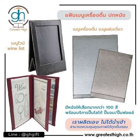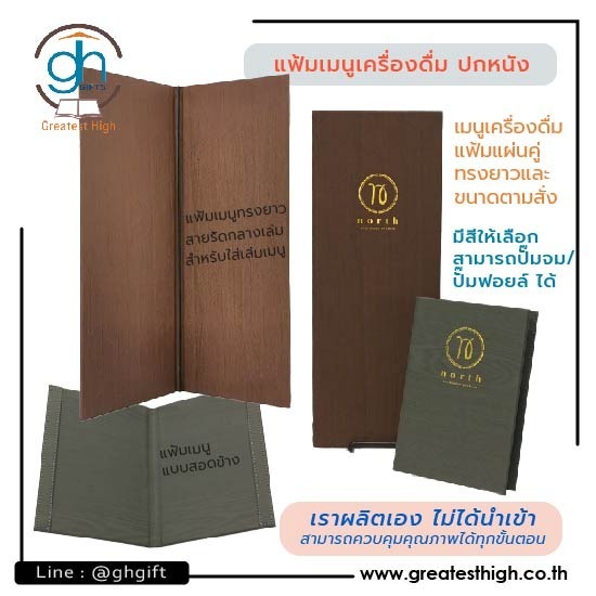 ผลิตแฟ้มเมนูอาหาร เมนูเครื่องดื่ม ปกหนัง สั่งทำตามแบบที่ลูกค้าต้องการ