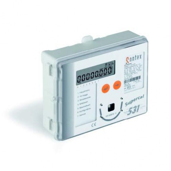 Thermal energy meter Superstatic 440+Supercal 531+Temperature sensor Distributed by Belim Main features Superstatic flow sensors are optimised for the measurement and calculation of energy consumption in cooling and heating systems. They are also extremely well suited to use purely as volumetric flow meters for various media. – Interchangeable measuring head – Comprehensive range 1...1500m3/h – Purchase and maintenance costs are reasonable compared with other static flow sensors. – Corrosion resistant materials – Threaded and flange connection – No straight sections necessary up to DN40 – No moving parts, therefore no wear – Not sensitive to dirt – Durable – Can be installed anywhere – Common spare parts 1...1500m3/h – Dynamic range 1:25 for qp 800...1500m3/h 1:50 for qp 40...400m3/h 1:100 for qp 1...40m3/h – Direct pick-up of voltage pulses – Measurement irrespective of medium – Long-term, stable, accurate and reliable measurement, even if water quality is poor. Ordering When placing an order for energy meters you must indicate the normal flow used for heating or cooling and mounting place (supply or return). Integrator The Supercal 531 integrator is suitable for connection with Pt500 temperature sensor pairs with 2- or 4-conducting wires techniques. Volume inputs can be combined with mechanical, magnetic-inductive, ultrasonic or fluidic oscillators flow sensors with a maxi- mum nominal flow rate of 10,000m3/h. The factor of the pulse value is defined in the flow meter unit. The volume input value is defined when the unit is produced. The additional pulse inputs allow the connection of hot water, cold water, gas, oil and electricity meters. Consumption values can be read easily on the LCD display or via the M-bus. Power supply module The power supply of the Supercal 531 - AC 24V 50/60Hz Communication module Built-in M-bus module. Data storage In case of power failure, the Supercal 531 has two non-volatile EEPROM for extensive data safety storage. In both EEPROM the data is updated every hour. The first non-vola- tile memory is located inside on the printed circuit board of the relevant calibration and measurement part of the integrator and stores the following data: – Parameters of the integrator and configuration parameter – Cumulated energy – Cumulated volume – Customer’s specific tariff – 15 monthly values – 32 maximum values – 32 average values – Two set day – Cumulated energy or volume on the set day – Operating hours – Date and time – MET serial number (integrator upper part, calibration and measurement part) – Pulse value of the flow meter The second non-volatile EEPROM is located on the printed circuit board in the integrator base part and stores the following parameters: – MIO serial number (integrator base part, printed circuit board) – Identification number and customer number – Pulse value of additional meters 1 and 2 – Cumulated values of additional meters 1 and 2 – Unit of additional meters 1 and 2 – M-bus address – Baud rate (M-bus) – Pulse value of the pulse output – Parameter setting of the analogue outputs – Alarm and threshold value This EEPROM ensures a smooth exchange of the calibration and measurement relevant part, without a new entering of the configuration of the communication.
