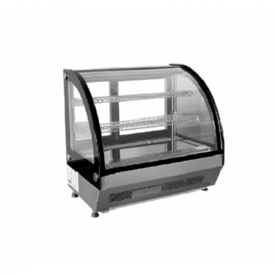 Curved glass cake freezer, 2 layers, vacuum, elegant design, suitable for coffee shops, bakeries, decorated in all styles. Add beauty in the store There is a digital temperature control precisely, 3 shelves including base, power 220V, 50Hz, 226W, temperature 2 to 10 degrees, 1 year warranty on cooling, 1 year compressor warranty.