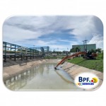 Distributing Soil, laterite, stone, scraps of brick / sand and sand sacks to make a dam. Piling with soil, sand and sand and scraps of brick. Dumpcart, backhoe and tractor Smoothing the areas and digging the pond