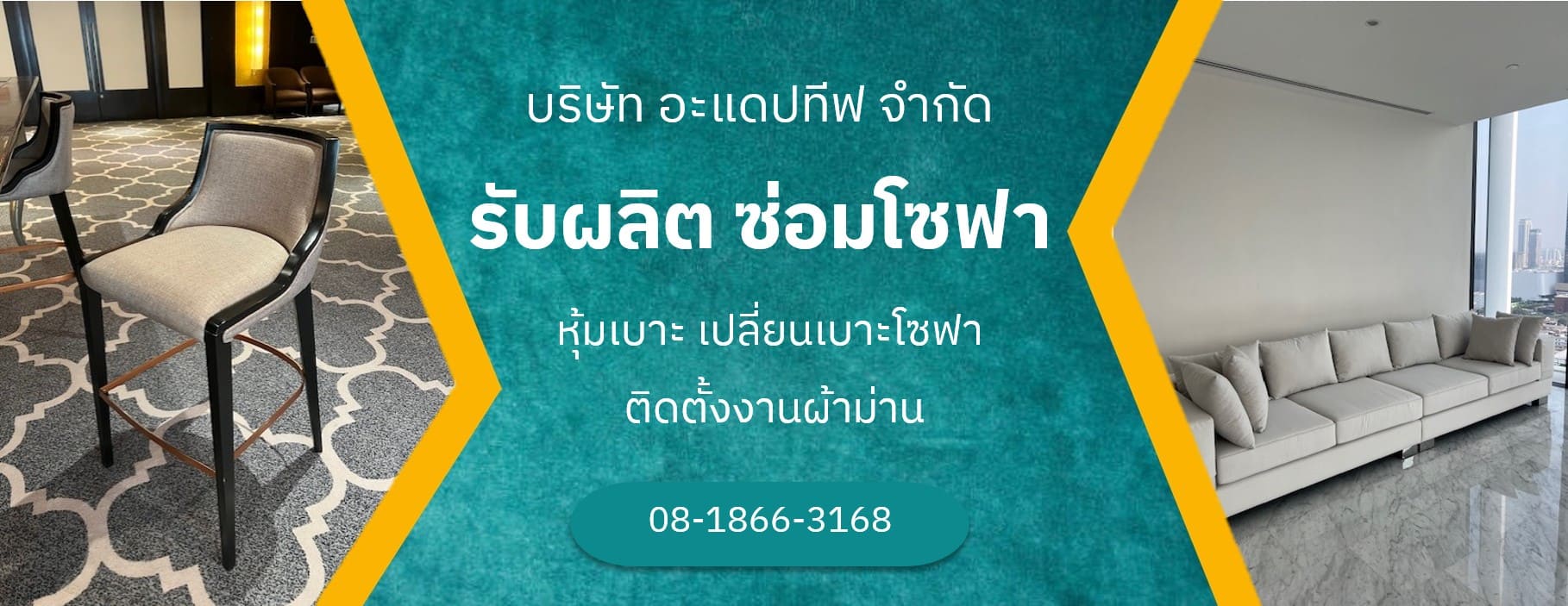 บริการซ่อมโซฟา สั่งทำโซฟาตามสั่ง สำหรับงานโรงแรมรีสอร์ท สำนักงาน ร้านอาหารที่สนใจต้องการมีชุดเฟอร์นิเจอร์ที่มีเอกลักษณ์เป็นของตัวเอง บริษัท อะแดปทีฟ จำกัด รับซ่อมเฟอร์นิเจอร์,ซ่อมเก้าอี้, ซ่อมโซฟา, ซ่อมเบาะโซฟาหุ้มเฟอร์นิเจอร์, หุ้มเบาะ, เฟอร์นิเจอร์หลุยส์ หนังแท้ หนังออย หนังเทียม PU, หนังเทียม PVC งานตกแต่งภายใน, เฟอร์นิเจอร์หนังเทียมPU, เฟอร์นิเจอร์หนังแท้, เปลี่ยนหนังแท้เก้าอี้ La z boy, เฟอร์นิเจอร์ตกแต่งบ้าน