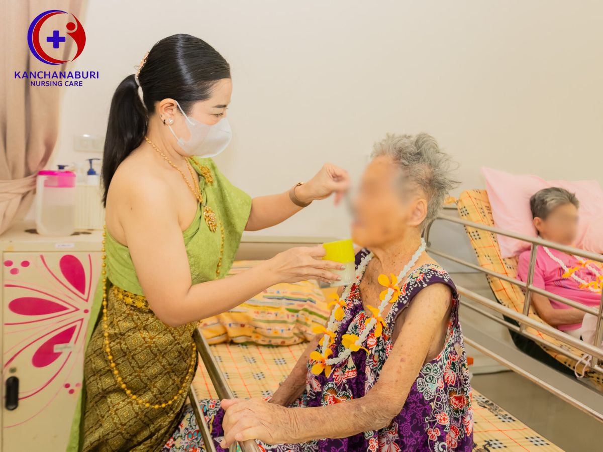 ศูนย์ดูแลผู้สูงอายุ กาญจนบุรี เนอร์สซิ่งแคร์ Kanchanaburi Nursing Care ชำนาญด้านการดูแลผู้สูงอายุ ผู้ป่วยติดเตียง ผู้ป่วยพักฟื้นหลังผ่าตัด ผู้ป่วยระยะสุดท้าย ผู้ป่วยโรคหลอดเลือดสมอง ทำกายภาพ ทำแผล ให้อาหารทางสายยาง ทำกิจกรรมออกกำลังกาย กิจกรรมสันทนาการส่งเสริมให้ผู้สูงอายุได้ยืดเส้นยืดสายและผ่อนคลายความเครียด