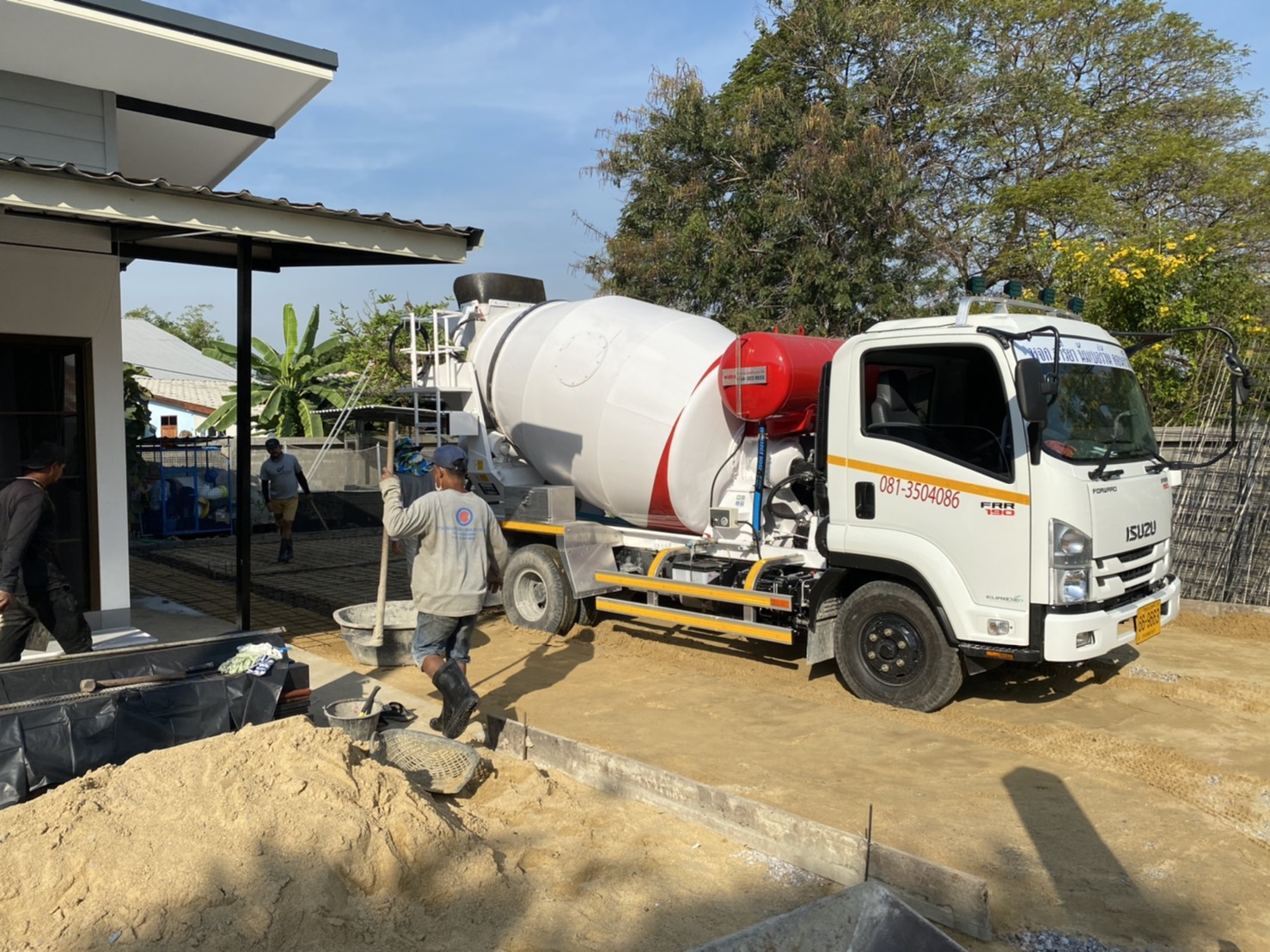 จำหน่ายคอนกรีตผสมเสร็จ บริการจัดส่งคอนกรีตผสมเสร็จด้วยรถโม่ปูนขนาดเล็กและรถโม่ปูนขนาดใหญ่ จัดส่งถึงหน้าไซต์งานทั่วพื้นที่จังหวัดปทุมธานี นนทบุรี บางบัวทอง สมุทรปราการ ต้องการใช้คอนกรีตผสมเสร็จประเภทใด-สำหรับงานอะไร เช่น คอนกรีตทั่วไป คอนกรีตกันซึม คอนกรีตมอร์ตาร์ คอนกรีตกันซัลเฟต คอนกรึตหดตัวต่ำ เป็นต้น ใช้คอนกรีตกำลังอัดกี่ KSC ต้องการใช้กี่คิว จัดส่งวันไหน ในพื้นที่ใด ใครเป็นเจ้าของงานใครคนรับคอนกรีต โทรเข้ามา หรือไลน์มาคุยได้
