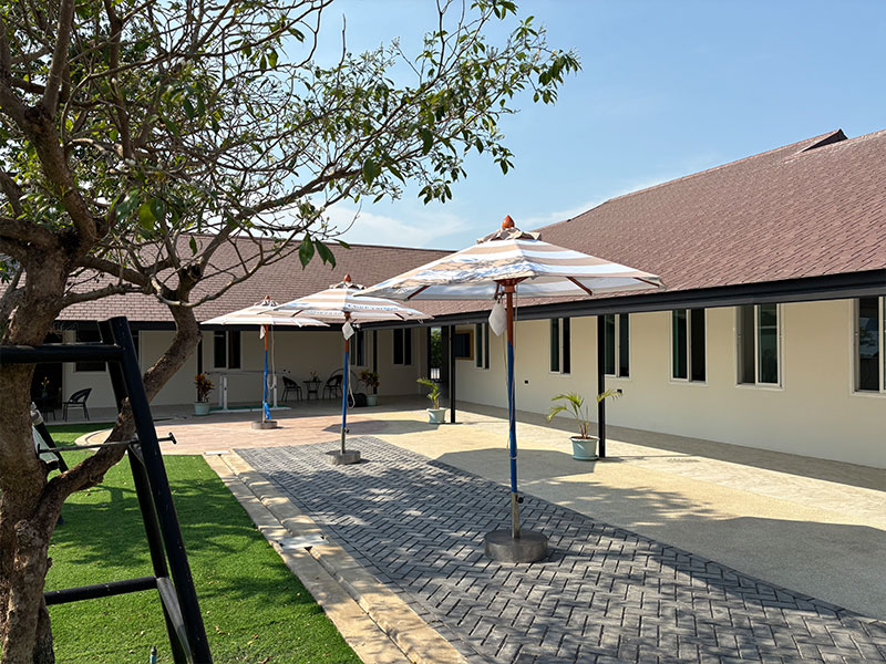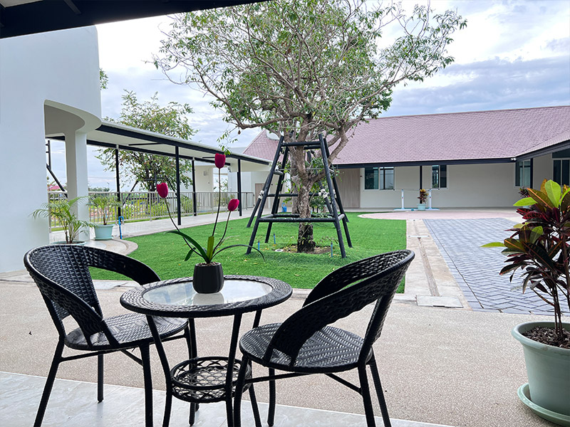 - เราสร้างสภาพแวดล้อมที่เป็นมิตร ใกล้ชิดธรรมชาติ พร้อมบรรยากาศที่อบอุ่นและปลอดภัย ให้ผู้สูงอายุได้พักผ่อนอย่างมีความสุข รู้สึกผ่อนคลาย และมีคุณภาพชีวิตที่ดีขึ้นทุกวัน