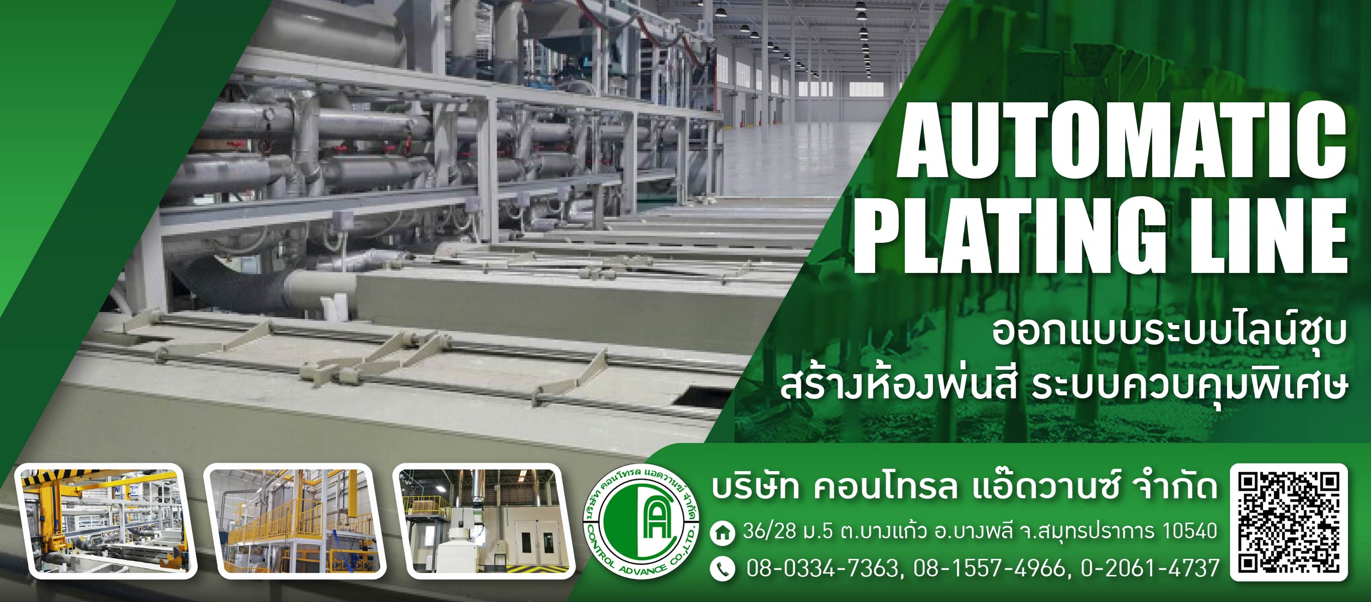 ในกระบวนการผลิตต่างๆ รวมถึงการปรับปรุงแก้ไขระบบควบคุมอัตโนมัติ ไลน์ชุบโลหะ (Automatic plating line) บริการให้คำปรึกษา ออกแบบ สร้างไลน์ชุบโลหะครบวงจร ทั้งระบบบาเรลถังกลิ้ง ไลน์ชุบแขวน ชุบโลหะระบบอัตโนมัติ ตู้คอนโทรลระบบไฟ เดินท่อน้ำ ติดตั้งปั๊มและท่อสารเคมี กระบวนการตั้งแต่งานเตรียมผิว งานชุบจุ่มถังชุบ PP ถังชุบ PVC พร้อมติดตั้งระบบพัดลมดูดอากาศ ดูดไอกรด ฮูด กำจัดไอกรด กลิ่นโครเมี่ยม บำบัดน้ำเสียจากการชุบ