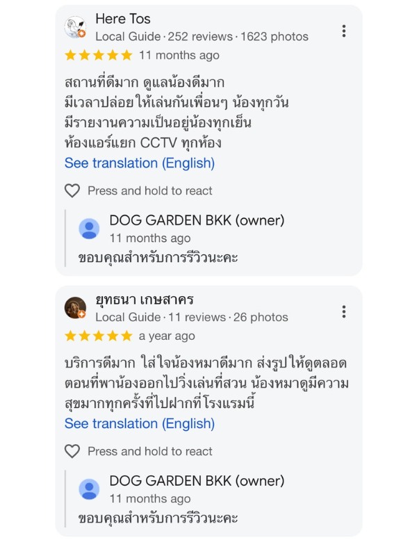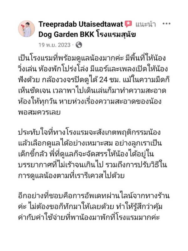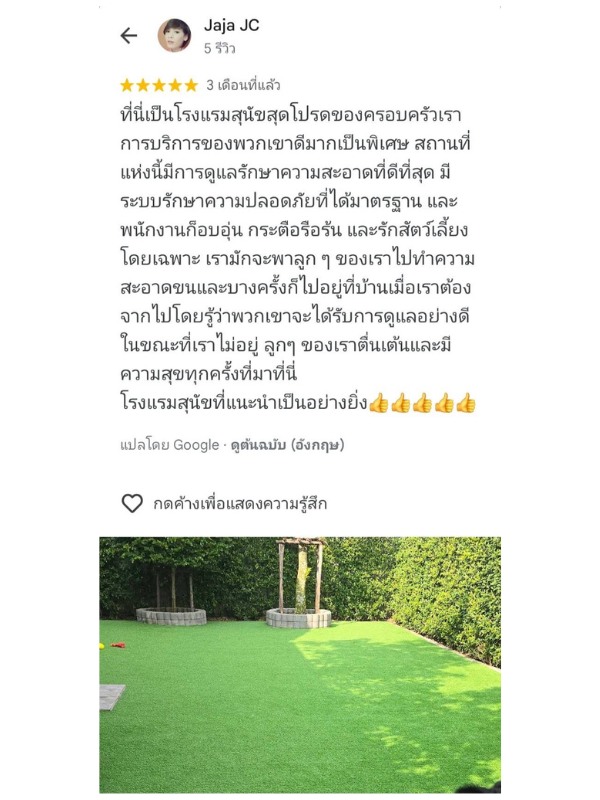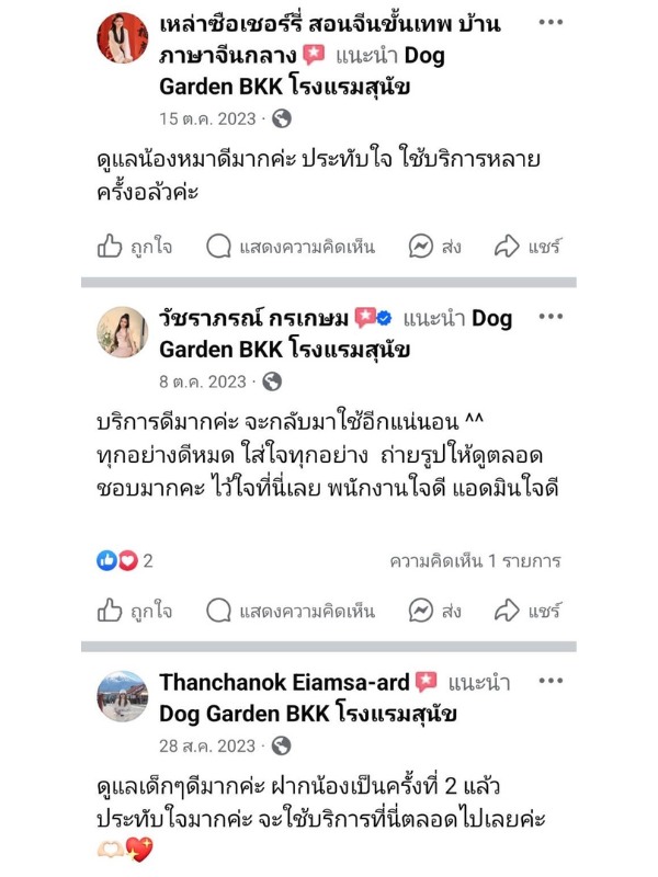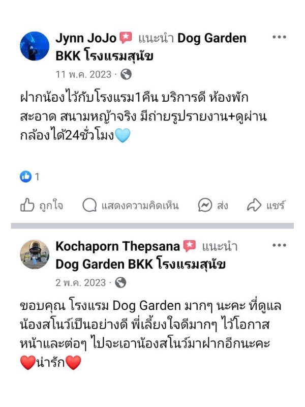 ลองเช็คดูหลายที่ สุดท้ายมาจบที่ โรงแรมสุนัข DOG GARDEN BKK แถวตลิ่งชัน จากบางแคมาไม่ไกล ส่วนบ้านญาติอยู่แถวราชพฤกษ์ นนทบุรี ก็มาไม่ไกล ติดใจที่นี่มาใช้บริการหลายรอบแล้ว บอกต่อเพื่อนๆ คือถูกต้อง ดีย์เลยแหละ