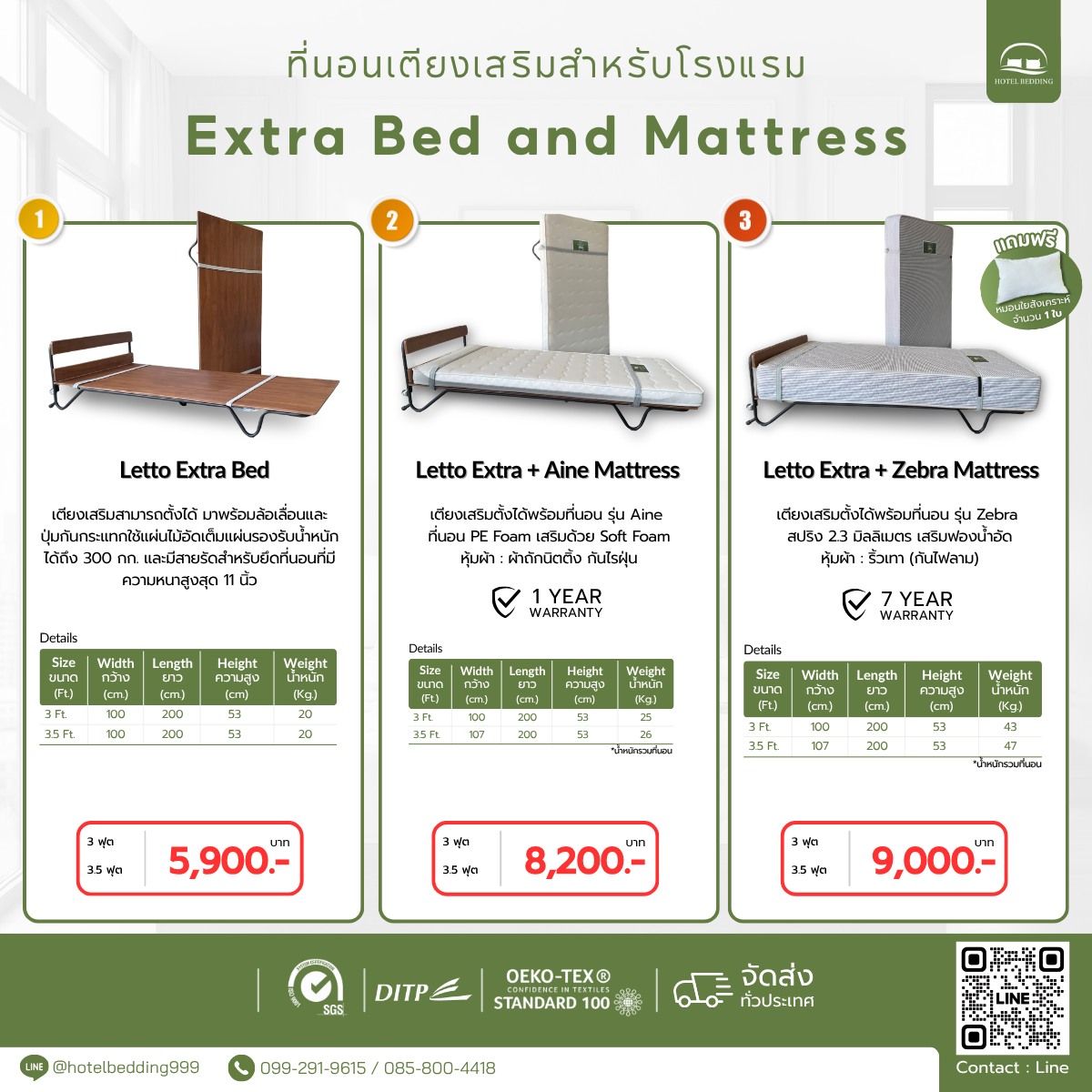 ที่นอนเตียงเสริมสำหรับโรงแรม