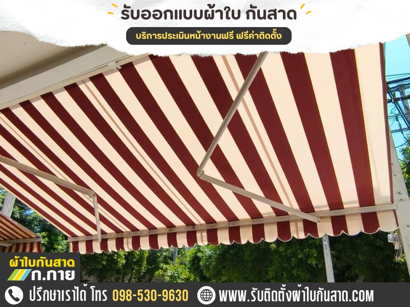 ออกแบบ ผลิต และติดตั้งกันสาดผ้าใบที่มีคุณภาพสูง สามารถป้องกันแดดและฝนได้อย่างมีประสิทธิภาพ พร้อมให้คำปรึกษาและออกแบบตามความต้องการของลูกค้า ผ้าใบขาค้ำยัน, ผ้าใบชักรอก, ผ้าใบสไลด์เปิด-ปิดได้