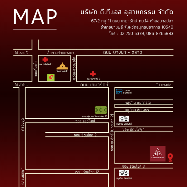 67/1 หมู่ที่ 11 ถนนเทพารักษ์ ตำบลบางปลา อำเภอบางพลี สมุทรปราการ 10540