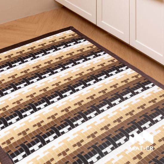 - เสื่อเมืองร้อนที่มีดีไซน์ร่วมสมัย ทอแบบลวดลายละเอียด มีสีสันสวยงาม เหมาะสำหรับใช้ตกแต่งพื้นบริเวณโต๊ะทานอาหาร ชุดโซฟารับแขก มุมอ่านหนังสือ