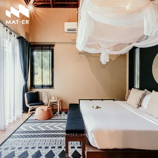 จำหน่ายวัสดุตกแต่งแบบสาน รับผลิตเสื่อแทนพรมเพื่อใช้เป็นวัสดุตกแต่งแบบสาน ผลิตจากพลาสติกรีไซเคิล 100% รับผลิตวัสดุตกแต่งแบบสานสำหรับใช้ตกแต่งพื้น ตกแต่งผนัง ตกแต่งเพดาน เหมาะสำหรับร้านอาหาร โรงแรม รีสอร์ท ที่ต้องการเพิ่มความโดดเด่นให้พื้นที่ โดยเราสามารถผลิตวัสดุตกแต่งแบบสานได้ตามความต้องการของลูกค้า หรือจะปรึกษาเราเรื่องแบบการผลิตวัสดุตกแต่งแบบสานก็สามารถทำได้ ทำไมถึงควรเลือกใช้วัสดุตกแต่งแบบสานที่ผลิตจากพลาสติกรีไซเคิล 100% ? ใช้วัตถุดิบพลาสติกรีไซเคิล 100% RCS ส่งเสริมเศรษฐกิจหมุนเวียน Circular Economy สร้างงานในห่วงโซ่อุปทานในกระบวนการรีไซเคิลและสร้างโอกาสทางธุรกิจด้วยนวัตกรรม ไม่ปล่อยขุย ไม่อมฝุ่น ไม่ขึ้นรา เนื้อวัสดุของ เสื่อแทนพรม Mat-er ไม่เป็นขุยฟุ้ง ไม่อมฝุ่น ป้องกันไรฝุ่นไม่ก่อให้เกิดภูมิแพ้ ไม่ดูดซับน้ำ-ไม่เก็บกลิ่นเหมือนเสื่อกกทั่วไป บอกลาปัญหาเชื้อรา ช่วยลดการเกิดภูมิแพ้ ดีต่อสุขภาพ ปลอดภัยต่อเด็กและสัตว์เลี้ยง เป็นเสื่อสีด้านไม่สะท้อนแสง ใช้สีผสมวัตถุดิบคุณภาพ Toy grade / Non toxic ปลอดสารก่อภูมิแพ้ เสื่อที่เป็นมิตรต่อเด็กเล็กและสัตว์เลี้ยง ทนแดด มีส่วนผสมสารทนรังสียูวี UV Inhibitor ป้องกันยูวีทำลายสีเสื่อหรือเปราะง่าย ใช้งานกลางแจ้งได้ดี ทนทาน งานถักทอแน่นกว่าเสื่อทั่วไปถึง 3 เท่าไม่ฉีกขาดง่าย เย็บริมด้วยผ้าทอคุณภาพสูง Woven Fabric เกรดเดียวกับเฟอร์นิเจอร์กลางแจ้ง ใช้งานได้ยาวนานทนคุ้มค่า