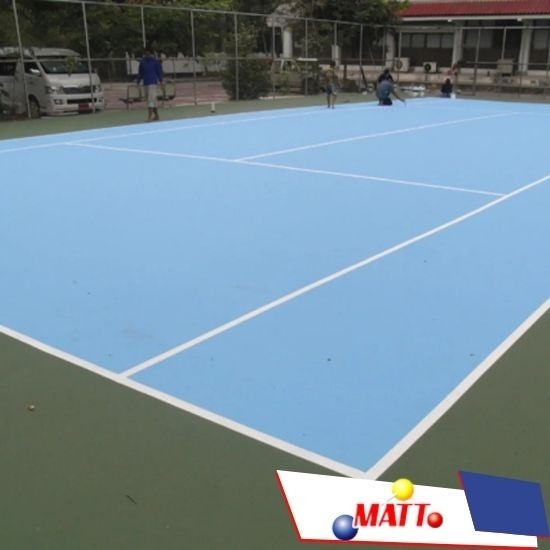 • ติดตั้งพื้นระบบอะคริลิก (Acrylic Court) ทนแดด สีสด ตีเส้นมาตรฐาน