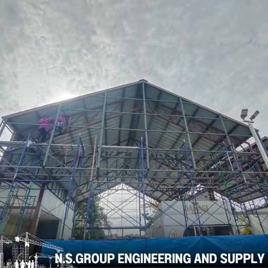 งานโครงสร้างเหล็กและงานคอนสร้างคอนกรีต หลังคาเมทัลชีท ฝ้ายิปซั่ม เดินระบบไฟฟ้ามิเตอร์แยก และเดินระบบประปา ระบบท่อดับเพลิง