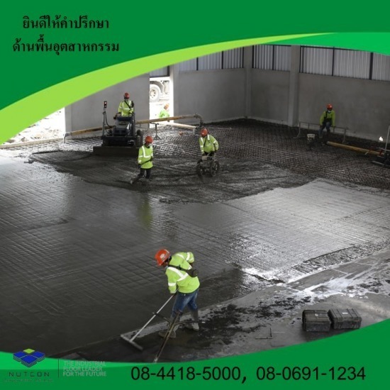 งานขัดพื้นคอนกรีต รับเหมางานขัดพื้นคอนกรีต  ขัดพื้นคอนกรีตสี การขัด Floor Hardener มีความแข็งแกร่ง ที่ผิว Mohs' hardness scale 8 : (Topaz)โดยส่วนผสมของซีเมนต์และวัสดุคละรวมกับ Superplasticizer สามารถทนต่อการเสียดสีได้เป็นอย่างดี และเพื่อลดการสึกกร่อนของบริเวณผิวคอนกรีตที่เกิดจากการใช้งาน   NUTCON เป็นผู้เชี่ยวชาญด้านการทำพื้นคอนกรีตที่มีเนื้อที่ขนาดใหญ่ ให้มีพื้นผิวเรียบสม่ำเสมอทุกตารางเมตร และมีความแกร่งด้วยเทคโนโลยีการทำพื้นให้มีความเรียบสม่ำเสมอด้วยเครื่องมือและอุปกรณ์งานพื้นคอนกรีตจากสหรัฐอเมริกาอย่างครบถ้วน พร้อมทีมช่างทำพื้นคอนกรีตที่มีความชำนาญผ่านการอบรมด้านเทคนิคจาก CPAC construction solution มาอย่างดี ใช้เครื่องตรวจสอบความเรียบและเครื่องมือตรวจแรงอัดของซีแพค สแกนและแสดงเป็นข้อมูลชัดเจนก่อนส่งมอบ