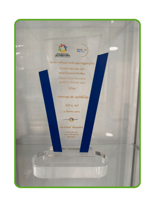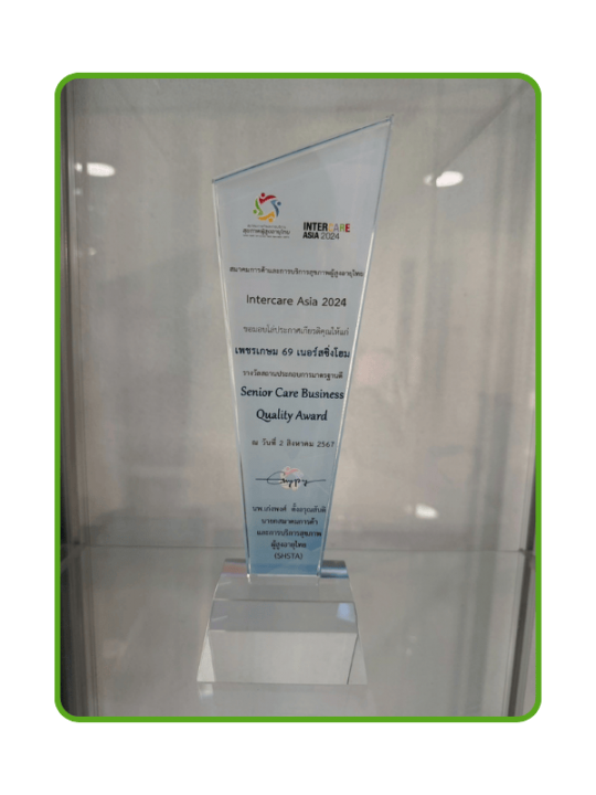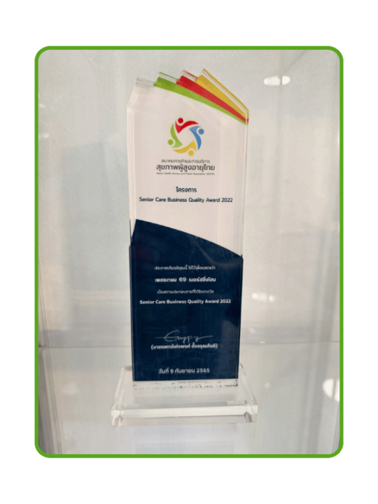 เราภูมิใจที่ได้เป็นสถานดูแลผู้สูงอายุที่ผ่านเกณฑ์มาตรฐานและได้รับรางวัลแห่งความสำเร็จ ซึ่งสะท้อนถึงศักยภาพการบริหารจัดการและการดูแลผู้ป่วยที่เป็นเลิศ