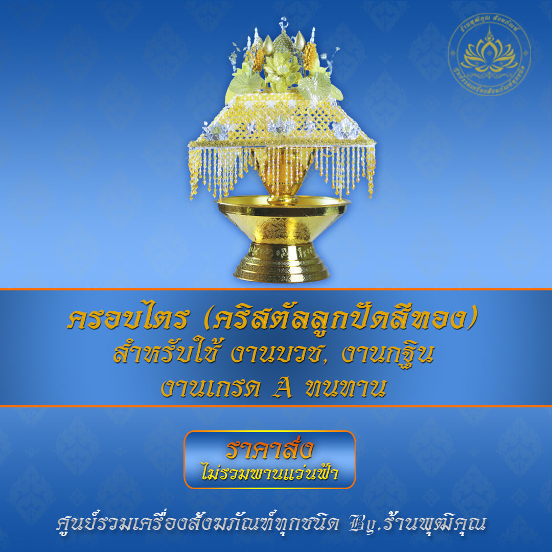 - ครอบไตร ราคาถูก มีหลายแบบให้เลือก มีสีให้เลือกทั้งทอง เงิน แบบคริสตัล แบบธรรมจักร