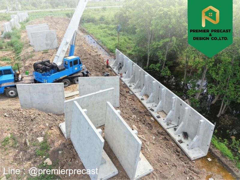 กำแพงกันดินตัวแอล กำแพงกันดินตัวแอลเป็นโครงสร้างคอนกรีตที่ออกแบบมาเพื่อรองรับแรงดันดินและป้องกันการพังทลายของพื้นที่ ชิ้นงานมีลักษณะเป็นรูปตัว L ช่วยเพิ่มความมั่นคงของโครงสร้างและใช้พื้นที่ติดตั้งน้อยกว่ากำแพงกันดินแบบดั้งเดิม เหมาะสำหรับงานที่ต้องการความแข็งแรง ความปลอดภัย และการควบคุมงานก่อสร้างอย่างเป็นระบบ เหมาะกับงานโครงสร้างภายนอกหลากหลายประเภท เช่น แนวรั้ว พื้นที่ต่างระดับ ถนนภายในโครงการ ลานจอดรถ หรือพื้นที่ที่ต้องการป้องกันดินสไลด์และการทรุดตัวในระยะยาว คุณสมบัติและจุดเด่นของกำแพงกันดินตัวแอล ออกแบบรองรับแรงดันดินตามสภาพการใช้งานจริง เพิ่มความมั่นคงให้โครงสร้าง ใช้พื้นที่ติดตั้งน้อย ช่วยประหยัดพื้นที่เมื่อเทียบกับกำแพงกันดินรูปแบบอื่น ผลิตจากโรงงานด้วยมาตรฐานเดียวกันทุกชิ้น ลดความคลาดเคลื่อนหน้างาน ติดตั้งได้รวดเร็ว ลดระยะเวลาการก่อสร้างและค่าแรง เหมาะกับงานภายนอกที่ต้องการความแข็งแรงและอายุการใช้งานยาวนาน