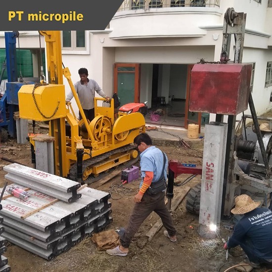 พีที ไมโครไพล์รับกดเสาเข็มหกเหลี่ยมกลวง ทุกความยาว ด้วยการใช้เสียมขุดดินลงไปเป็นรูลึก แล้วจึงเสียบเสาเข็มลงไปในรูที่ขุด จากนั้นจึงกดเสาลงดินด้วยแรงงานขย่มเสาเข็ม โดยเรามีช่างที่มีความชำนาญ รู้จักหวะ รู้น้ำหนัก พร้อมยังมีบริการขุดวางท่อ ขุดวางถังบำบัด และขุดวางถังแซท ไม่ว่าจะเป็นหมู่บ้าน อาคาร บ้านพัก ทั่วกรุงเทพ นนทบุรี เราให้บริการได้หมด