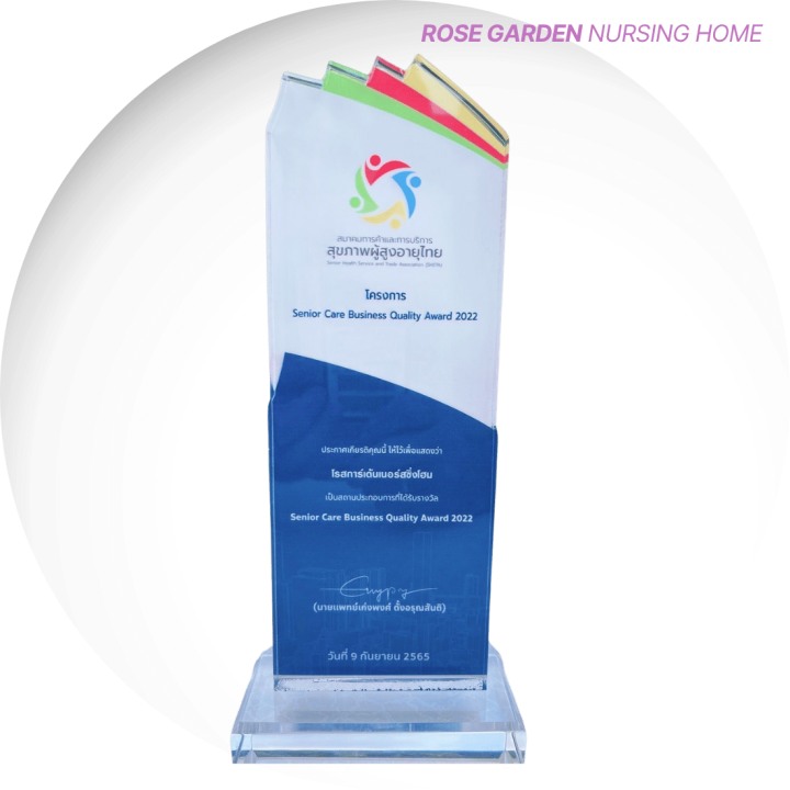 เราเป็นหนึ่งในสมาชิกสมาคมการค้าและการบริการสุขภาพผู้สูงอายุไทย ได้รับโล่ประกาศเกียรติคุณ รางวัลดีเด่นระดับประเทศ ประสบการณ์มากกว่า 30 ปี ที่สร้างความมั่นใจให้กับทุกคนในครอบครัว