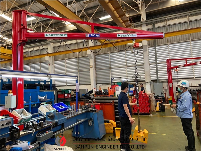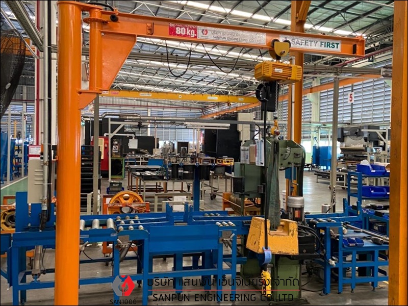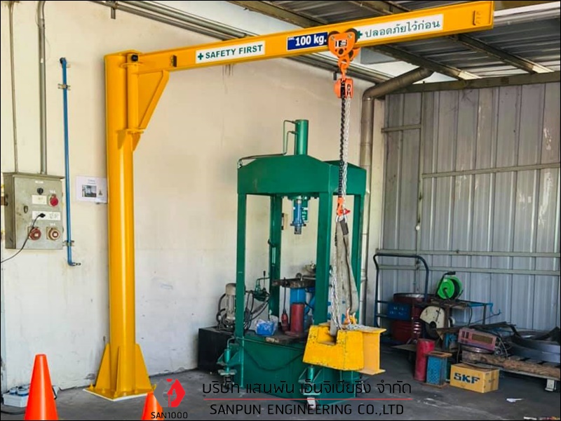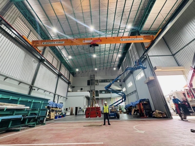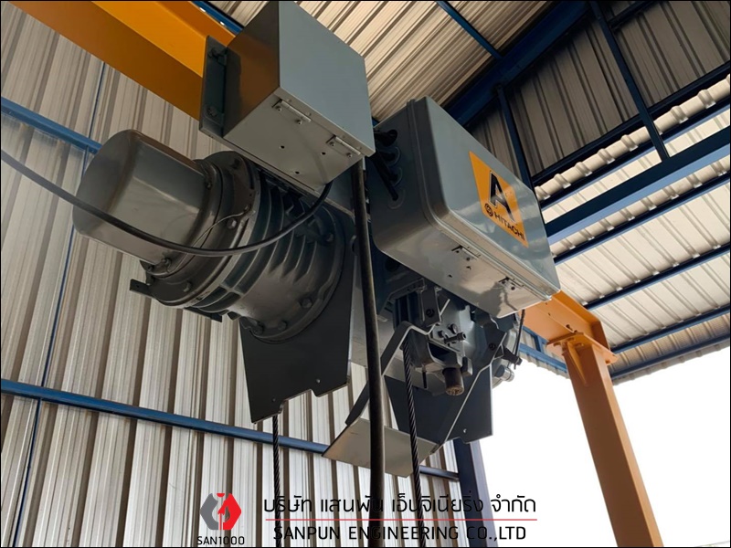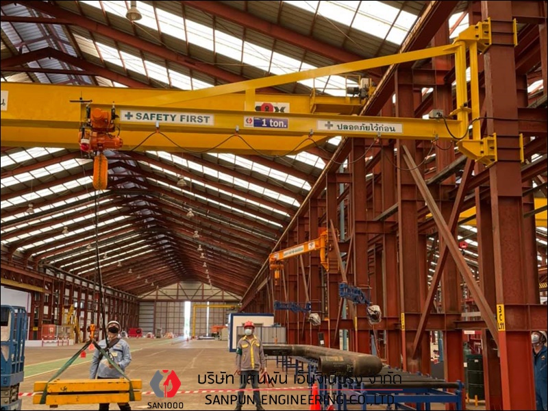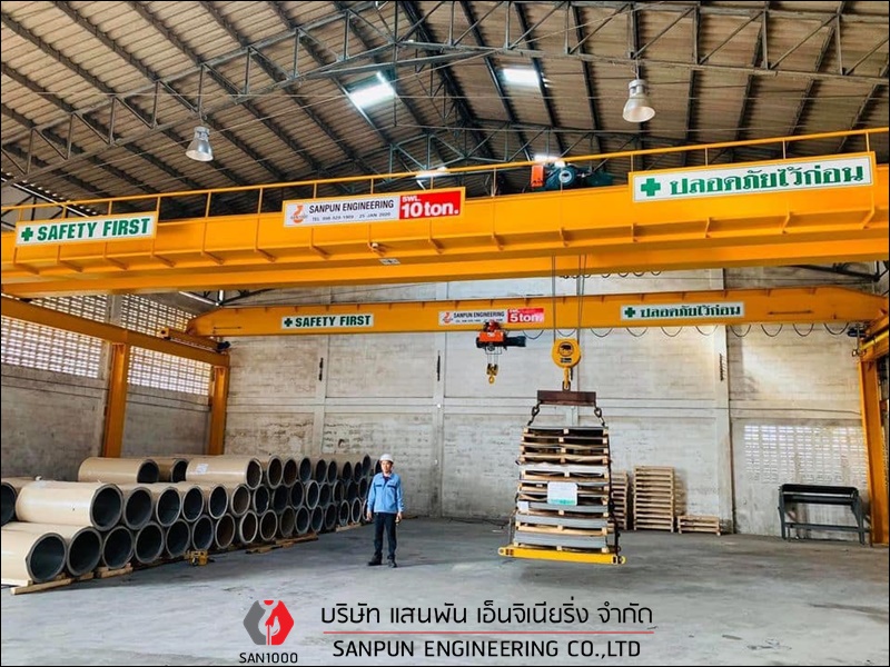 เครนเหนือศีรษะแบบคานเดี่ยว ติดตั้งเครนเหนือศีรษะแบบคานเดี่ยว เครนโรงงานแบบคานเดี่ยว Single Girder Overhead Crane เครนเหนือศีรษะแบบคานเดี่ยว หรือ เครนโรงงานแบบคานเดี่ยว หรือ Single Girder Overhead Crane เหมาะสำหรับโรงงานอุตสาหกรรมที่ต้องการยกน้ำหนักไม่มากนัก คานและรางตั้งอยู่บนเสาอาคาร ตัวเครนตั้งอยู่บนอาคาร สามารถใช้งานได้มากถึง 6 ทิศทาง คือ ซ้าย - ขวา, หน้า - หลัง, บน - ล่าง ตัวรอกวิ่งอยู่ใต้คาน คุณสมบัติและลักษณะเด่นของเครนเหนือศีรษะ แบบคานเดี่ยว มีน้ำหนักยกตั้งแต่ 1 ton ถึง 12.5 ton หรือ 1,000 kg ถึง 12,500 kg มีความกว้างในการใช้งานตั้งแต่ 6 - 25 เมตร สามารถยกวัตถุเคลื่อนที่ชิดซ้าย - ขวาได้มากขึ้น ประโยชน์ในการนำไปใช้ สำหรับเครนเหนือศีรษะ แบบคานเดี่ยว โครงสร้างตัวเครนมีน้ำหนักเบา ใช้พลังงานน้อยการปฏิบัติงาน มีรอก (Hoist) ที่ออกแบบและผลิตเป็นมาตรฐานรุ่นต่างๆ สำหรับเครนเหนือศีรษะ แบบคานเดี่ยวอยู่แล้วสำหรับแขวนประกอบกับเครนชนิดนี้ บริษัท แสนพัน เอ็นจิเนียริ่ง จำกัด ผู้ผลิตและติดตั้งเครนโรงงานทุกชนิด ต้องการสอบถามหรือขอคำแนะนำได้ที่ Tel : 098-5291909