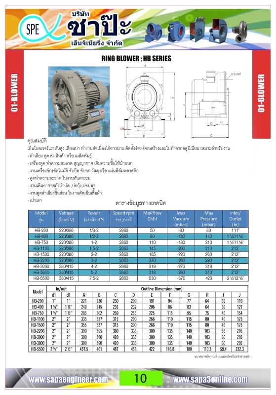 โบลเวอร์ไฟเบอร์กลาสขับตรง