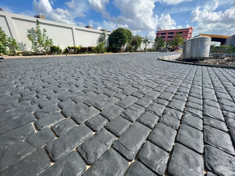 วัสดุตกแต่งพื้นทางเดินสวนและวัสดุประสานร่องบล็อกปูพื้น ประสานร่องคอบเบิลสโตน ที่ตอบโจทย์งานจัดสวนของช่างรับเหมาจัดสวน งานปูพื้นทางเดินฟุตบาทของบริษัทรับเหมาก่อสร้าง-ช่างรับเหมาทำพื้น