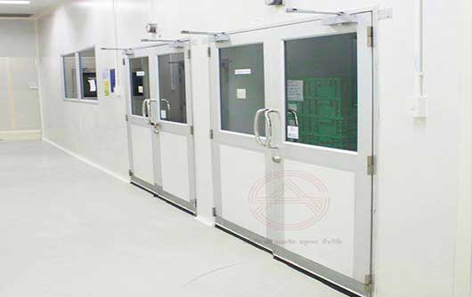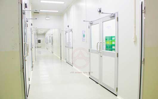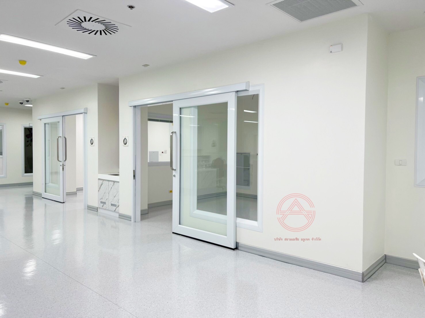 ประตูห้องปลอดเชื้อ ประตูห้องปลอดเชื้อประตู สำหรับโรงพยาบาล คลีนิค ห้องแล็บ ผลิตโดยวัสดุที่ได้รับมาตรฐาน ลักษณะเป็นประตูเปิดสองทาง ชุดวงกบและกรอบบานใช้อลูมิเนียม ชนิดหนาพิเศษ ทนทานต่อการใช้งาน โช๊คอัพสวิงชนิดฝังในวงกบบน แบบเปิดบานแล้วตั้งค้างที่ 90 องศา หรือเปิดบานแล้วไม่ตั้งค้างได้รับมาตรฐานผลิตภัณฑ์อุตสาหกรรม มอก.1101-2535 มือจับประตูกระบองตัวซี ผลิตจากวัสดุสแตนเลส กุญแจล็อคแบบขอสับ หัวกุญแจแบบเกลียว แข็งแรง ทนทานกว่าแบบสลัก แป้นล็อคแข็งแรงเป็นพิเศษ ด้วยสแตนเลสหนา 5 ชั้น กุญแจเข้ารหัสด้วยระบบ 5 PIN กุญแจมีชนิด กุญแจสองด้านและกุญแจด้านเดียว-ลูกบิด วัสดุที่ใช้บุบานประตู ใช้แผ่นฉนวนสำเร็จรูป (Sandwish Panel) สามารถเจาะช่องมองที่บานประตู โดยใส่กระจกใสชนิดต่างๆ หรืออะคริลิคใส หนา 6 มม. PORYCARBONATED มียางที่ขอบประตูโดยรอบพื่อป้องกันฝุ่นและแมลง ขนาดบานประตู 0.90 X 2.00 เมตร 1.00 X 2.00 เมตร หรือขนาดอื่นๆตามความต้องการ คุณสมบัติ ดูแลรักษาง่าย ประกันคุณภาพ 1 ปี มีแผ่นฉนวนกันไฟ