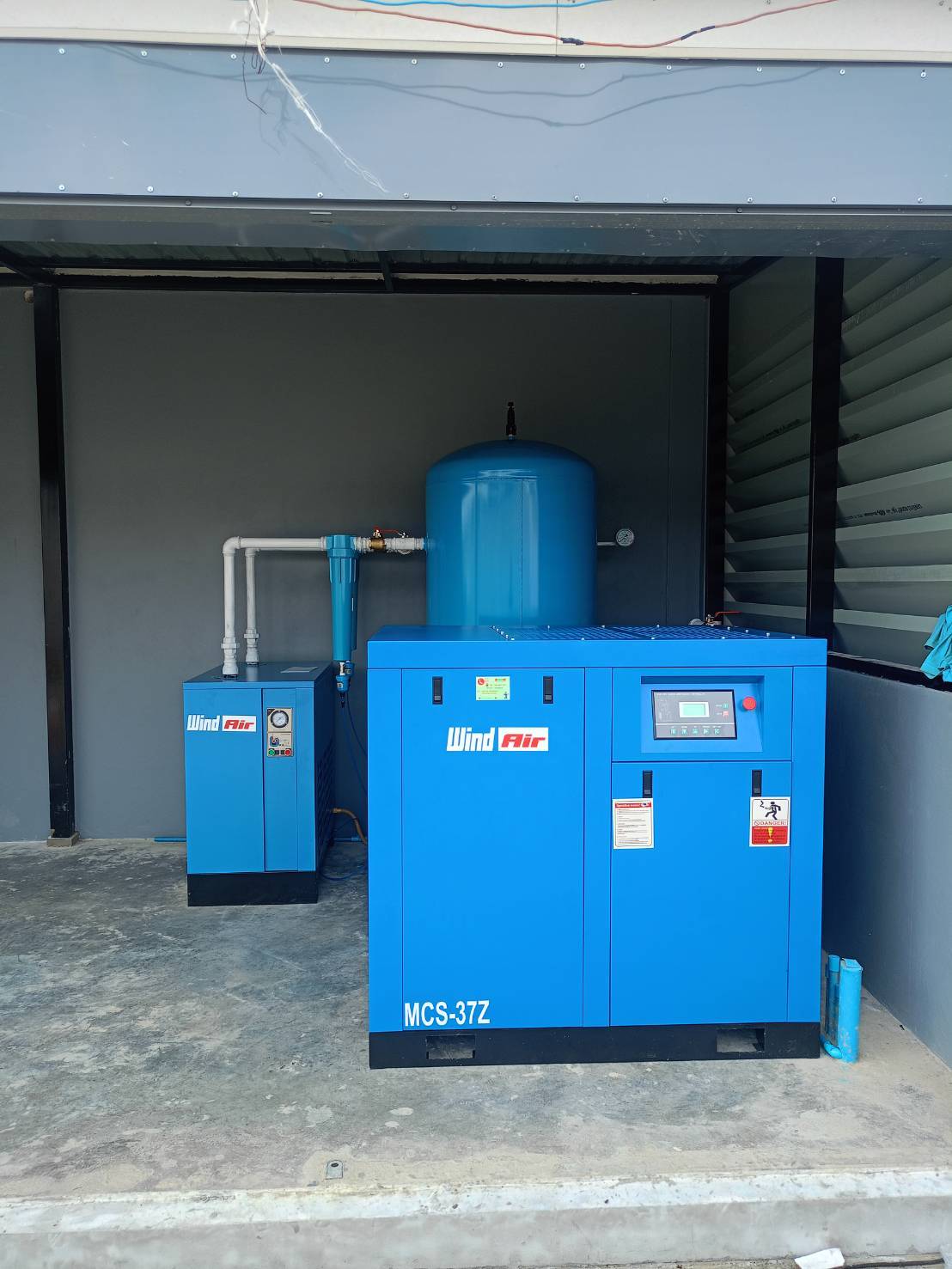 - ปั๊มลมสกรู Wind Air เหมาะกับอุตสาหกรรมสิ่งทอ ใช้ลมในการขับเคลื่อนเครื่องทอผ้า, เครื่องย้อมผ้า, และระบบทำความสะอาด