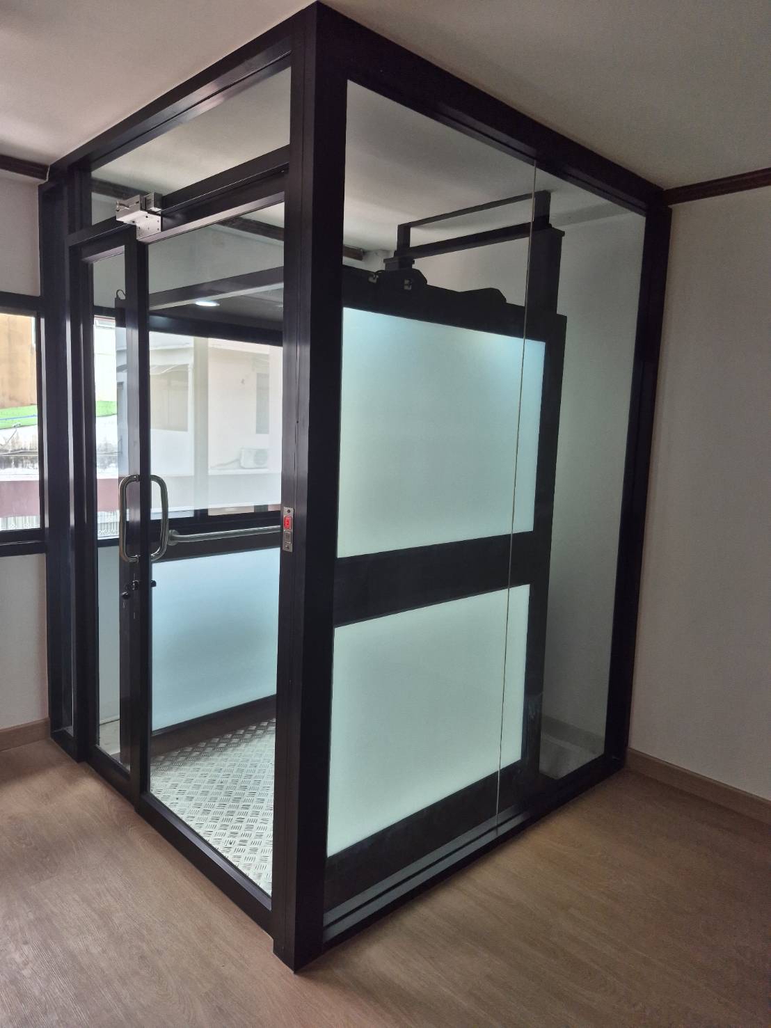 • ลิฟท์บ้านที่ปลอดภัยติดตั้งเซ็นเซอร์ระบบเซฟตี้ควบคุมการทำงานของลิฟท์