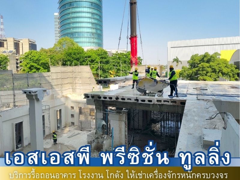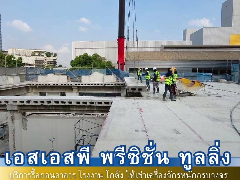 รื้อถอนทุกส่วน: รื้อถอนส่วนควบอาคาร, รื้อหลังคา-โครงสร้างเหล็ก, ทุบทำลายคอนกรีต, ทุบพื้น และขนย้ายเครื่องจักร