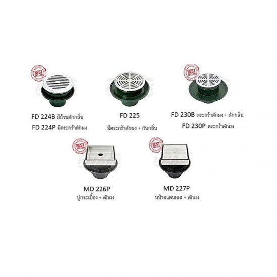 ขายตะแกรงระบายน้ำทิ้ง ตะแกรงระบายน้ำทิ้ง ตะแกรง น้ำทิ้ง กันกลิ่น ตะแกรงระบายน้ำ ฟลอร์เดรน ตะแกรงกันกลิ่น สแตนเลส 2" 3" 4" (รุ่น 100s 300s 400s) ตะแกรงน้ำทิ้งทรงกลม (ทองเหลืองชุบโครเมี่ยม) ตะแกรงน้ำทิ้งทรงเหลี่ยม-หน้ากลม (สเตนเลส) ตะแกรงน้ำทิ้งทรงกลม (สเตนเลส) ตะแกรงน้ำทิ้งทรงเหลี่ยม-หน้ากลม (สเตนเลส) มีขนาดเล็กสวยงามมีน้ำหนักเบา มีรูปแบบตะแกรงให้เลือกหลากหลาย วัสดุเป็นสเตนเลส 18-8 (304) ไม่เป็นสนิมอายุการใช้งานยาวนาน มีทั้งรุ่นที่มีดักกลิ่นและไม่มีดักกลิ่น ให้เลือกใช้ตามความเหมาะสม ติดตั้งง่ายด้วยวิธีการสวมกับท่อ PVC