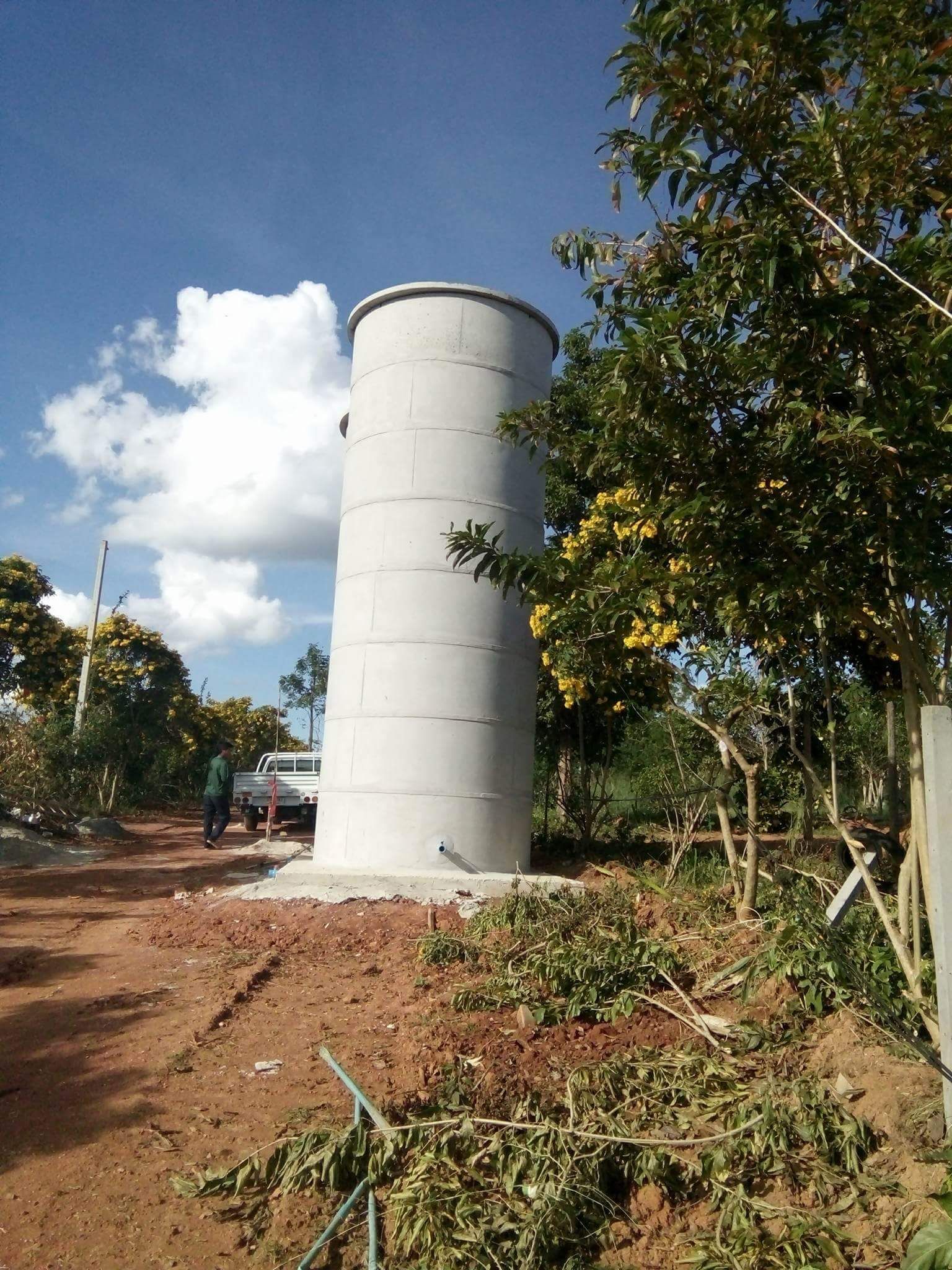 เราสามารถสร้างแทงค์น้ำคอนกรีตทรงกระบอก 7 ชั้น (เพิ่มจำนวนชั้นได้) แต่ละชั้นมีขนาดเส้นผ่านศูนย์กลาง 2.50 เมตร สูง 0.80 เมตร พร้อมฐานคอนกรีตเสริมเหล็ก 1 ชิ้น และฝาคอนกรีตเสริมเหล็ก 1 ชิ้น มีฝาเปิดปิดเล็ก สำหรับ ลงไปทำความสะอาดภายในแทงค์ได้ ขนาดความจุ 7ชั้น สามารถบรรจุน้ำได้ประมาณ 24,000 ลิตร (หรือ 24.0คิว) ประหยัดเงินลงทุน มีอายุการใช้งาน ยาวนาน ใช้ประโยชน์ได้ดังนี้ ใช้เก็บน้ำไว้ใช้ในการดื่ม การเกษตร การปศุสัตว์ หรือการบำบัดน้ำเสีย เป็นต้น
