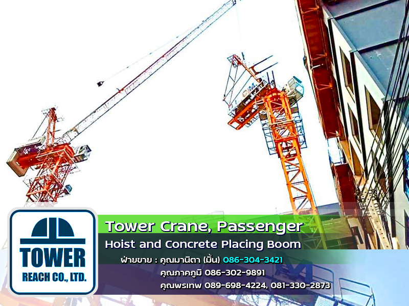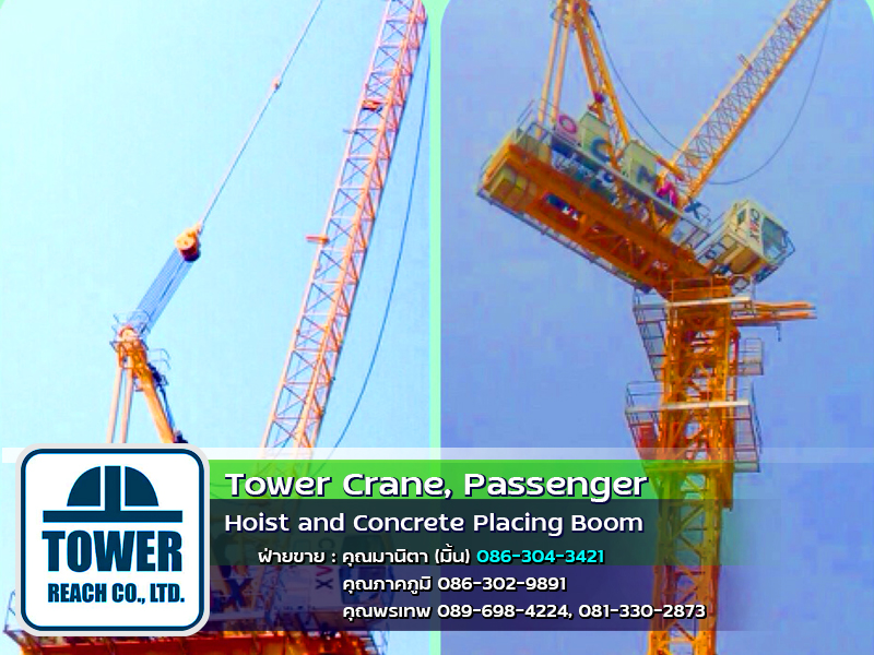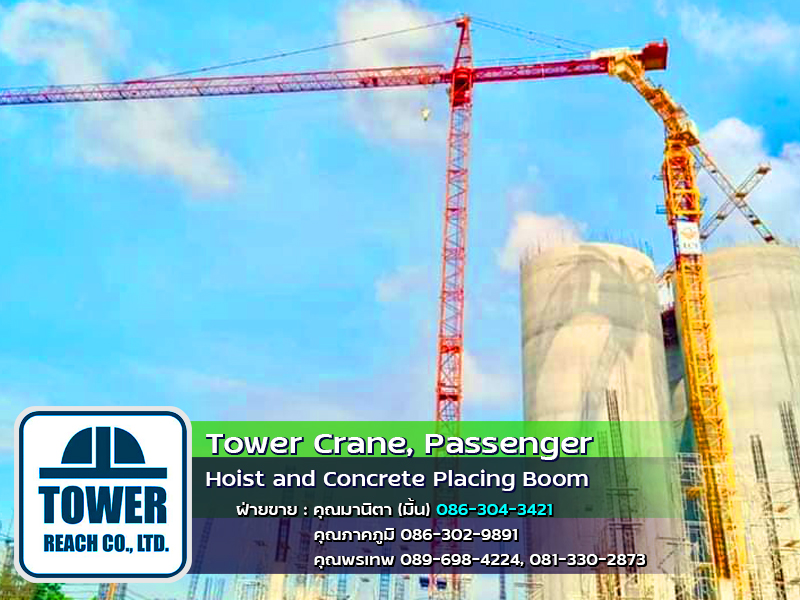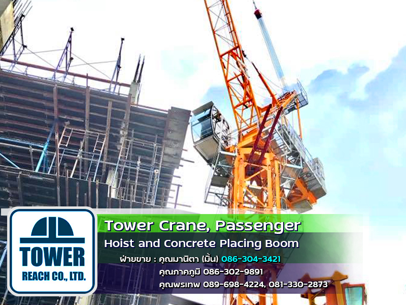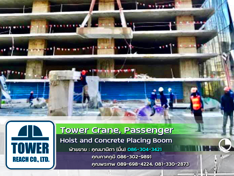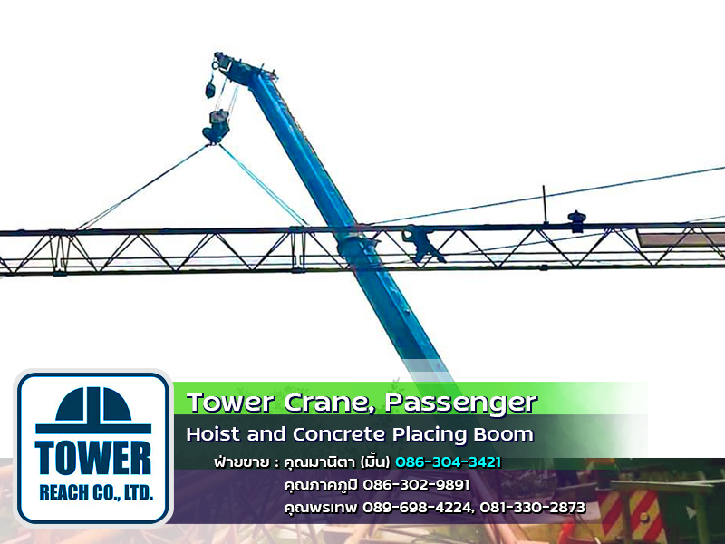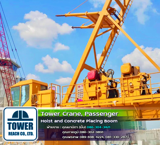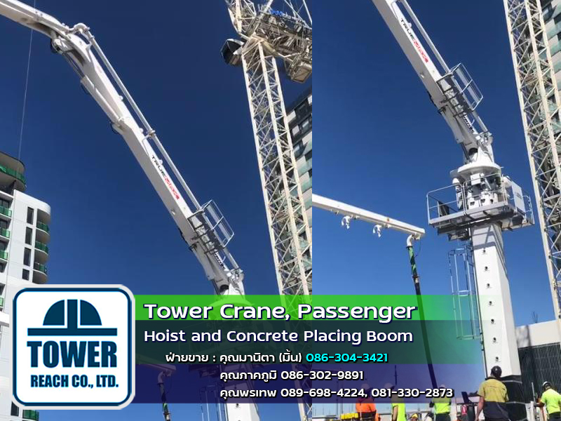 บริษัท ทาวเวอร์รีช จำกัด ผู้นำเข้า ทาวเวอร์เครน เดอริคเครน ลิฟต์โดยสารและขนส่งวัสดุ Concrete Placing Boom (บูมลำเลียงคอนกรีตผสมเสร็จ) สินค้าใหม่และมือสอง พร้อมทีมช่างมากประสบการณ์ ครบวงจร และบริการหลังการขาย